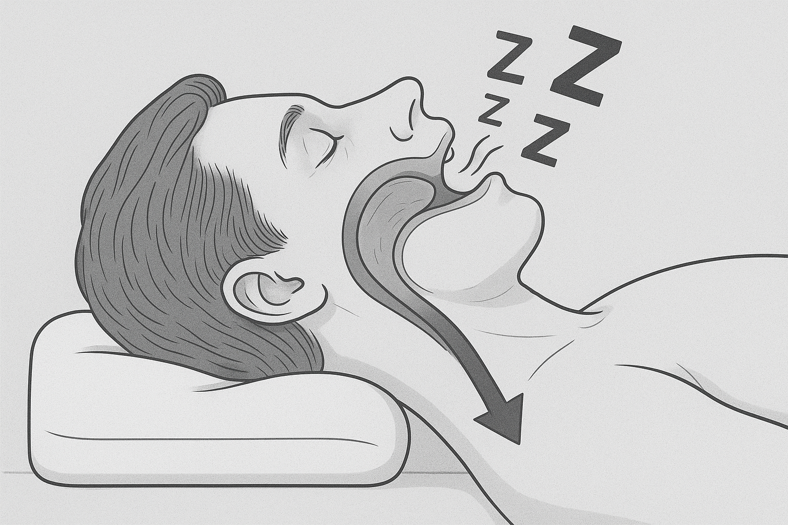 Wenn wir gerade auf dem Rücken liegen, entspannt sich die Muskulatur im Rachenraum. Dabei kann die Zunge nach hinten in den Rachen fallen und die Atemwege teilweise blockieren.